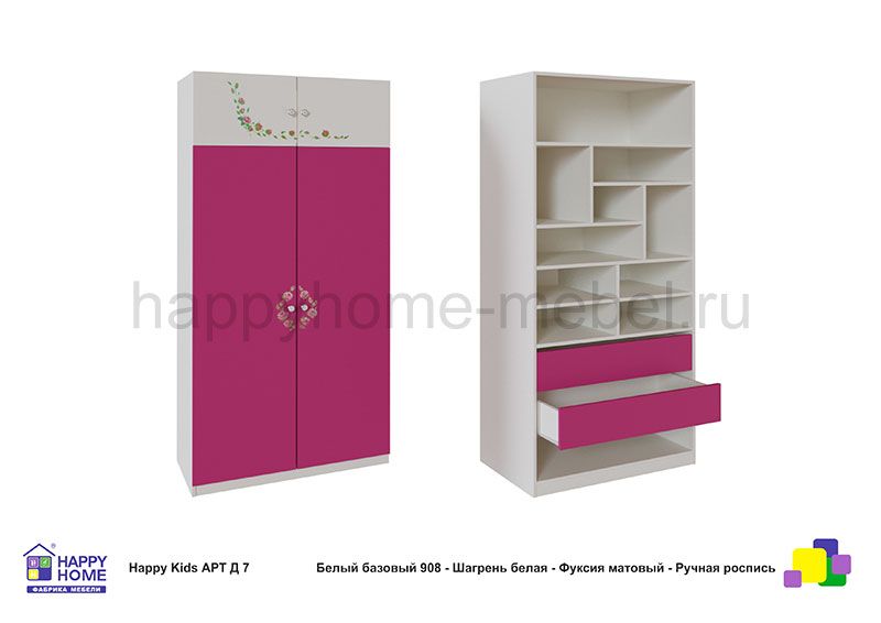 Шкаф для одежды Happy kids ART D7 для комнаты девочки. Уникальность мебели в том, что высококачественные фасады из МДФ вручную расписаны художником. Все материалы абсолютно экологически безопасны и сертифицированы для детских комнат.