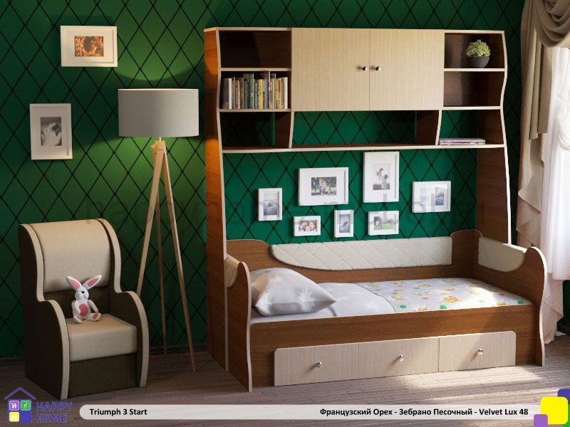 Триумф - это целая серия детских стенок всех возможных комплектаций, в сотнях расцветок и всех подходящих размеров.