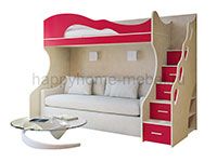 Двухъярусная кровать с диваном - прекрасное решение для комнаты маленького ребенка или подростка. Нижняя часть являет собой удобный диван с мягкой спинкой, верхняя - спальное место стандартного размера. Существует ряд моделей, в которых диван является трансформером - то есть, раскладывается в еще одно, более широкое спальное место. При выборе двухъярусной кровати с диваном следует обратить внимание на обивку дивана. В комнату, где есть ребенок, рациональнее установить диван с обивкой из кожи или кожзаменителя, поскольку эти материалы легче всего поддаются чистке.