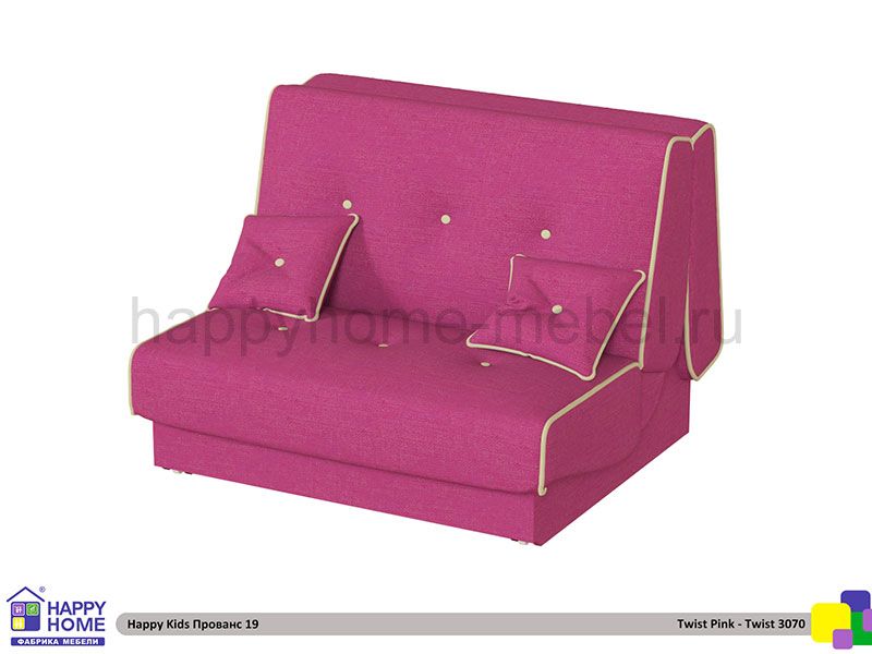 Диван раскладывающийся в полутороспальную кровать Happy kids Прованс 19 имеет прямую форму и механизм трансформации спального места - "Аккордеон". Для обивки дивана используются ткани рогожа или микровелюр, обратная сторона спинки обита тканью-партнёром бязь. Данным типом дивана можно укомплектовать кровать-чердак с подходящей шириной ниши в результате чего легко получить два спальных места, которые могут компактно разместиться на ограниченной территории спальни или комнаты.