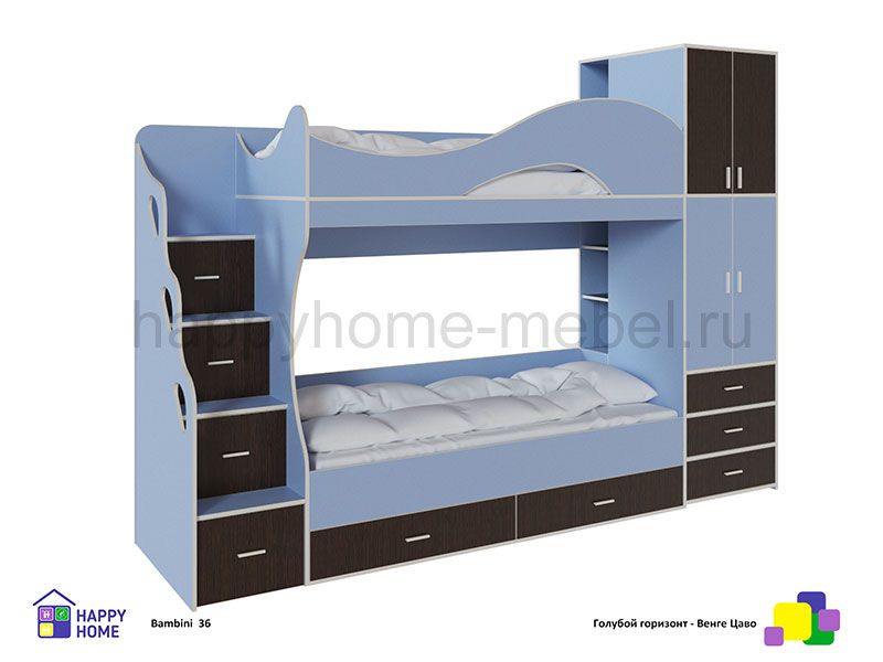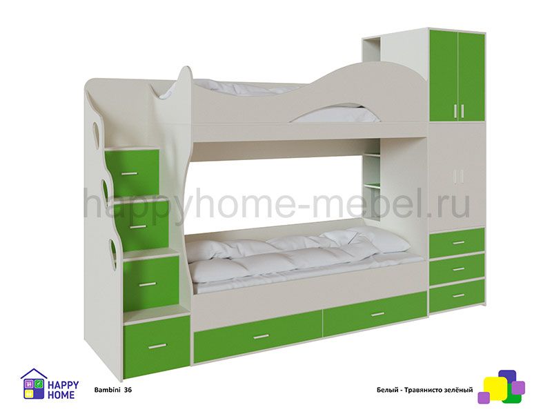 Детская двухъярусная кровать для детей разного возраста Бамбини 36 Сьют ( с фронтальным открыванием дверей шкафа)