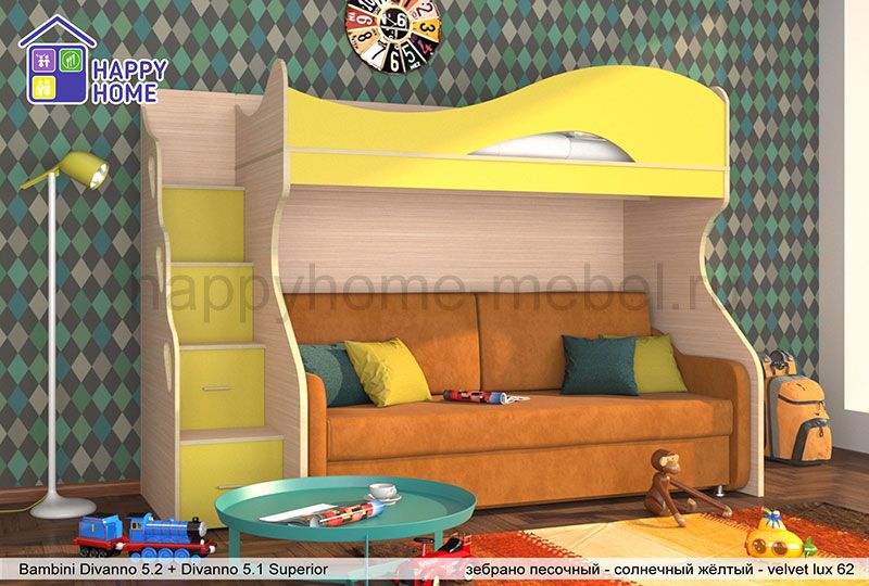 Кровать двухъярусная с диваном, Лестница |