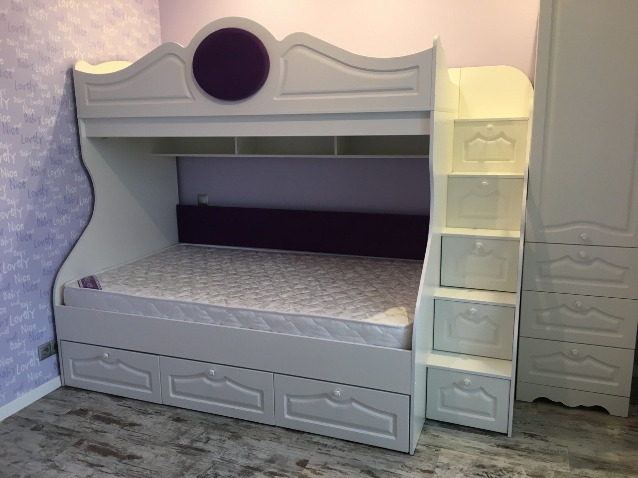 Двухъярусная кровать Happy kids Прованс 2 со спальными местами под матрасы 1900 х 800 мм. и 1900 х 1100 мм.