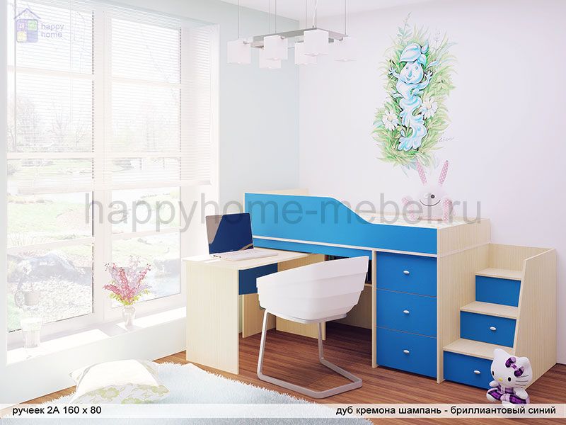 Детская кровать чердак серия Радуга, модель Ручеёк 2А.