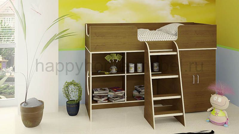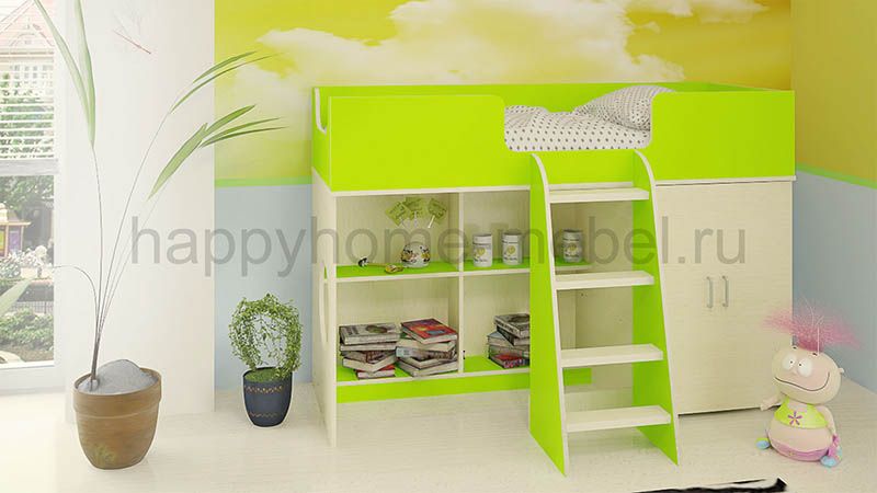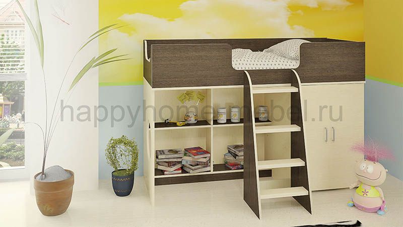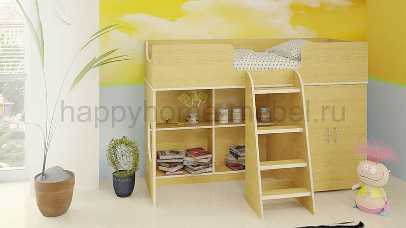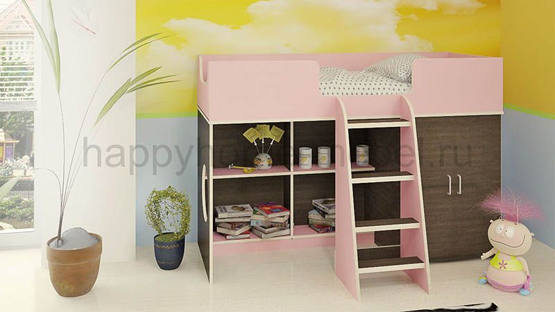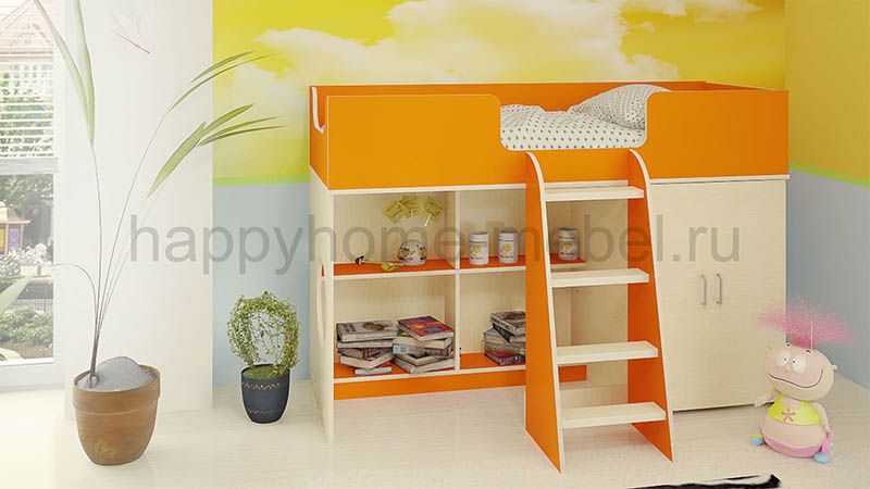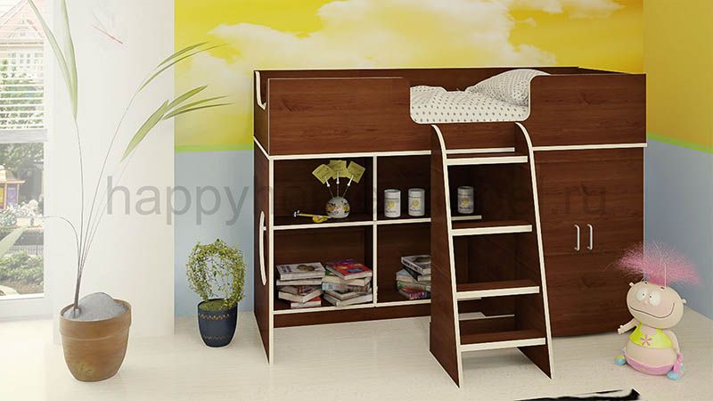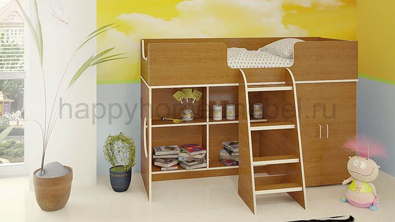 Приобрела кровать для своей дочки 3,5 года. Все думала, не высоко ли ей будет. Ей так понравилось, что даже днём мы в кроватке частенько играем!! Очень продумано, что все края обработаны противоударной кромкой, ведь дети все время ударяются, вертятся неудачно. Ступеньки правда немного неудобные, идут почти одна под другой, а не как сторона пирамиды в наклон, но приноровиться можно)) очень вместительный шкаф, можно с полочками сделать, можно штангу повесить для вешалок. Спальное место довольно просторное, вообщем мы все очень довольны, а главное дочке понравилось!!)) Спасибо Вам за такую кроватку!