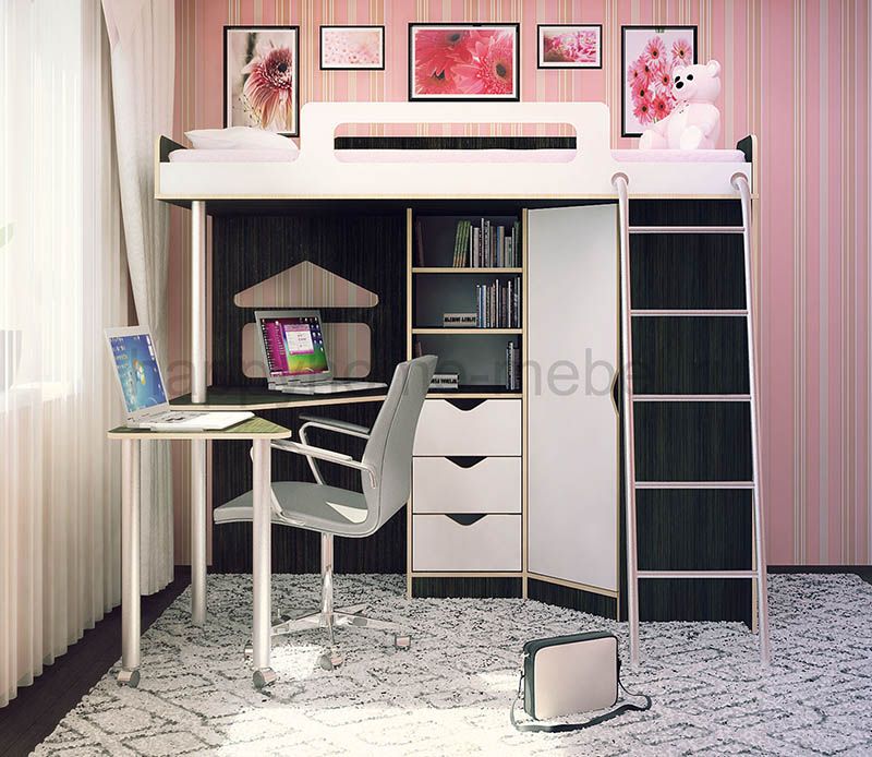 Кровать-чердак, Лестница, Стеллаж, Стол, Шкаф для одежды |