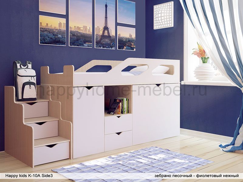 Низкая детская кровать-чердак Happy kids K-10А с высоким бортом безопасности Side-3