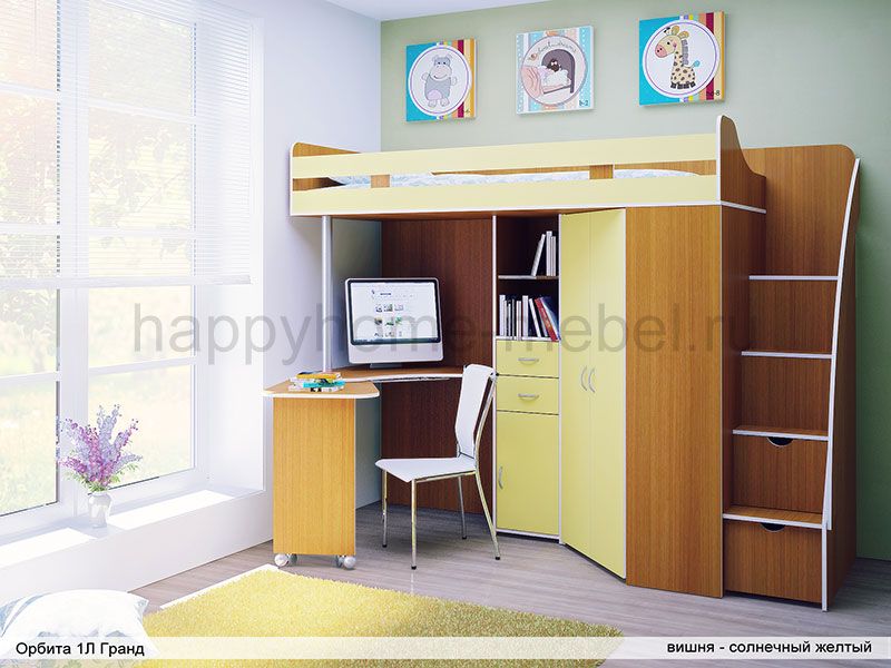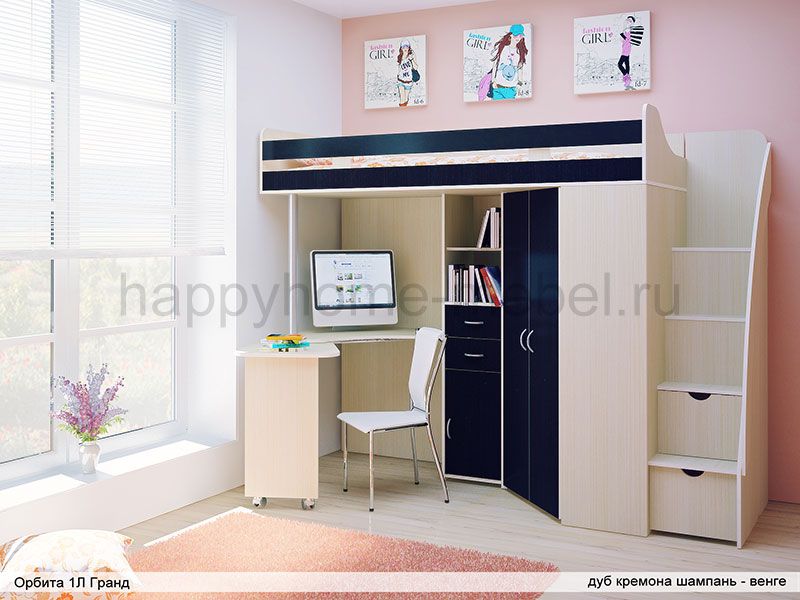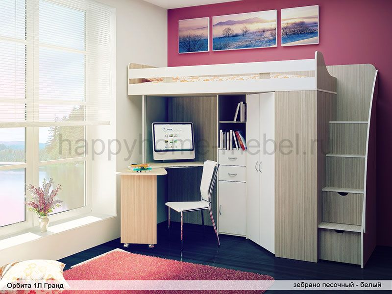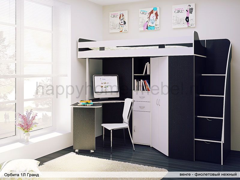 Кровать-чердак, Лестница, Стол |