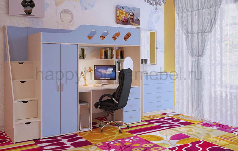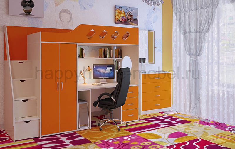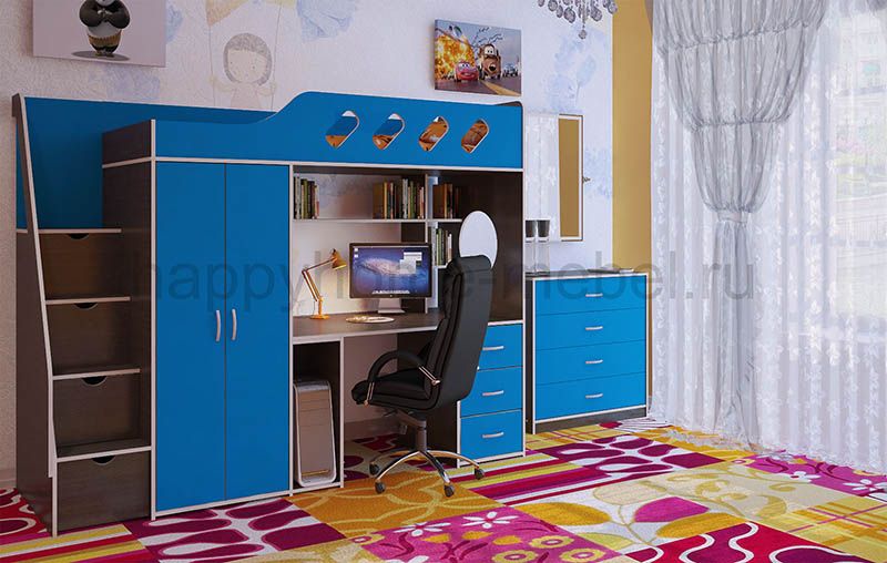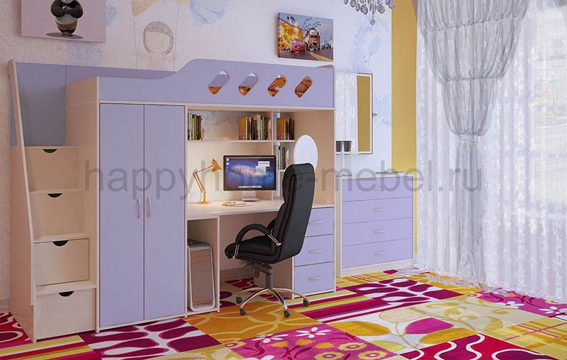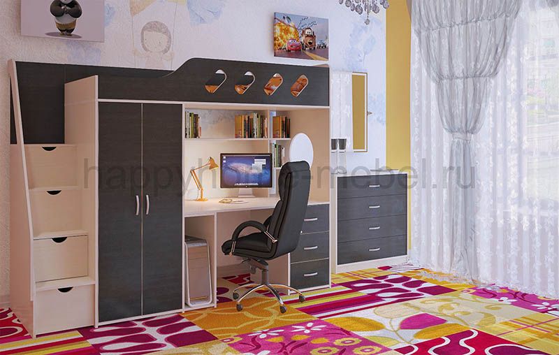 Кровать-чердак, Лестница, Стол рабочий, Шкаф |