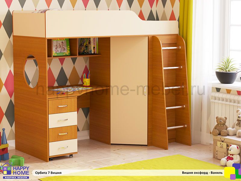 КРОВАТЬ-ЧЕРДАК ОРБИТА 7 (КОРПУС - ВИШНЯ ОКСФОРД)