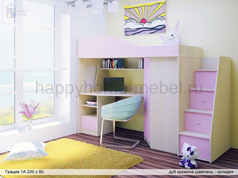 Детская кровать чердак серия Радуга, модель Грация 1A.