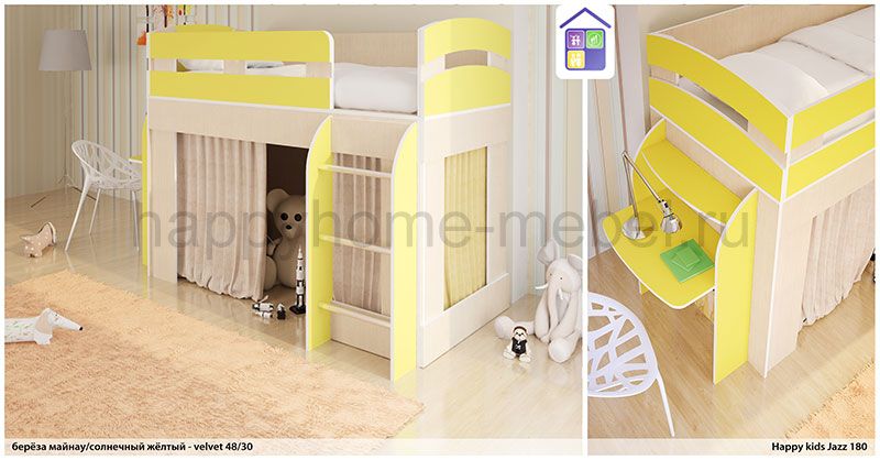 КРОВАТЬ-ЧЕРДАК HAPPY KIDS JAZZ 180Х90