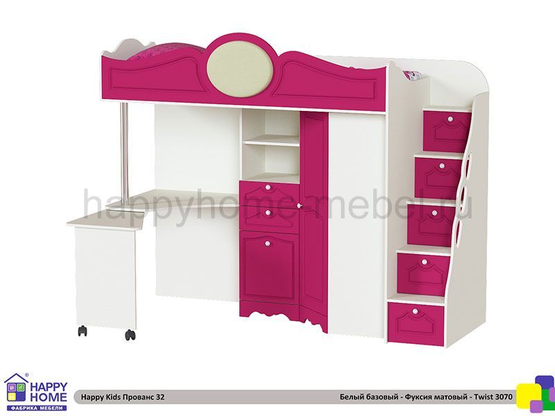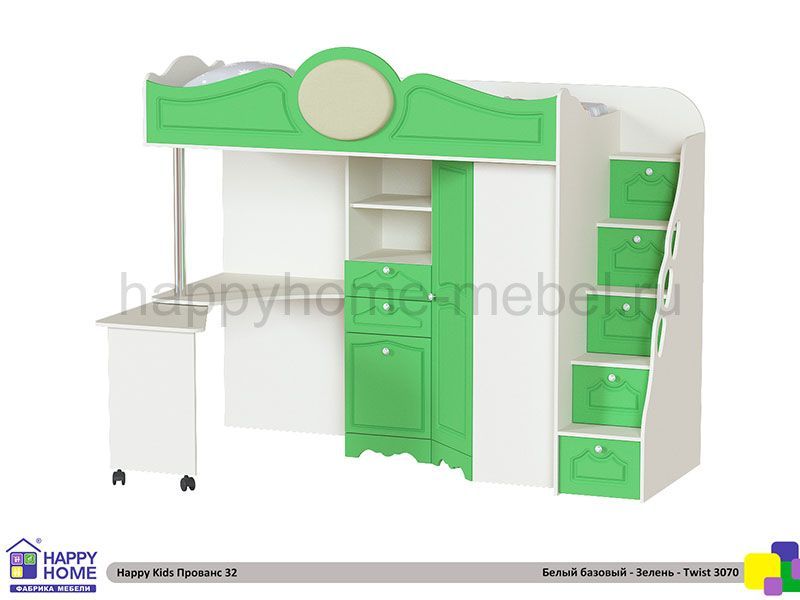 КРОВАТЬ - ЧЕРДАК С РАБОЧЕЙ ЗОНОЙ HAPPY KIDS ПРОВАНС 32